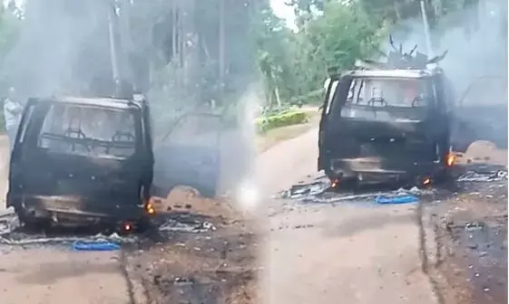 ಚಿಕ್ಕಮಗಳೂರು: ಶಾರ್ಟ್ ಸರ್ಕ್ಯೂಟ್ ನಿಂದ ನಡು ರಸ್ತೆಯಲ್ಲೇ ಹೊತ್ತಿ ಉರಿದ ಓಮ್ನಿ ಕಾರು