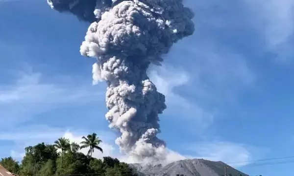 ಇಂಡೊನೇಷ್ಯಾದಲ್ಲಿ ಜ್ವಾಲಾಮುಖಿ ಸ್ಫೋಟ ; ಚಿಮ್ಮುತ್ತಿರುವ ಲಾವಾರಸದ ಬೂದಿ