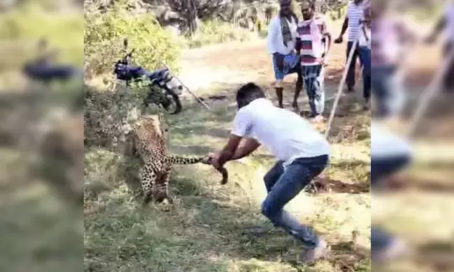 ತಿಪಟೂರು: ಚಿರತೆಯ ಬಾಲ ಹಿಡಿದು ಅರಣ್ಯ ಇಲಾಖೆ ಬಲೆಗೆ ಕೆಡವಿದ ಯುವಕ