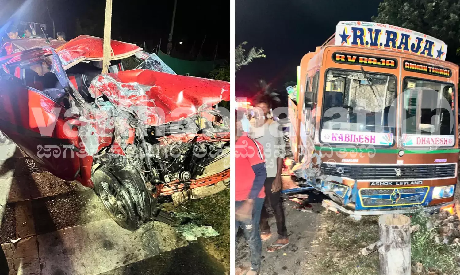 ಅಪಘಾತದ ತೀವ್ರತೆಗೆ ಕಾರು ಸಂಪೂರ್ಣವಾಗಿ ನಜ್ಜುಗುಜ್ಜಾಗಿದೆ.
