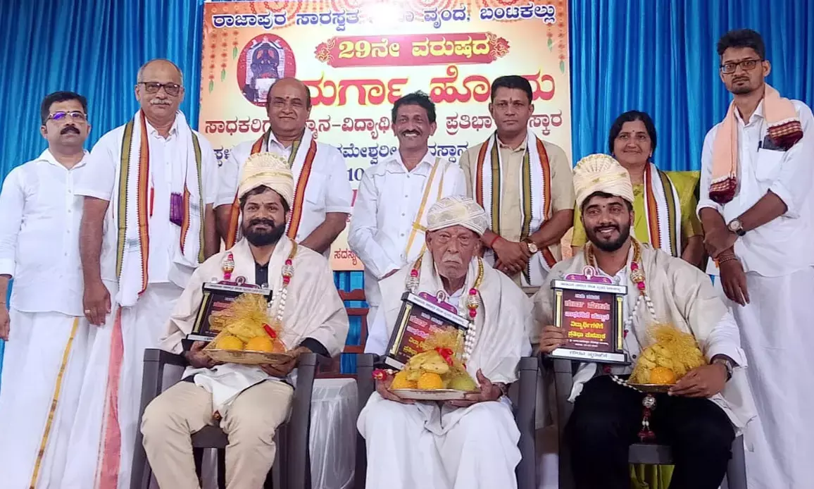 ಶಿರ್ವ, ಅ.19: ರಾಜಾಪುರ ಸಾರಸ್ವತ ಸೇವಾ ವೃಂದ ವತಿಯಿಂಜ 29ನೇ ವರ್ಷದ ದುರ್ಗಾಹೋಮ ಸೇವಾ-ಪ್ರತಿಭಾ ಪುರಸ್ಕಾರ-ಸಾಧಕರಿಗೆ ಸನ್ಮಾನ ಕಾರ್ಯಕ್ರಮವನ್ನು ರವಿವಾರ ಶ್ರೀಕ್ಷೇತ್ರ ಬಂಟಕಲ್ಲು ಶ್ರೀದುರ್ಗಾ ಪರಮೇಶ್ವರೀ ದೇವಳದಲ್ಲಿ ಆಯೋಜಿಸಲಾಗಿತ್ತು.