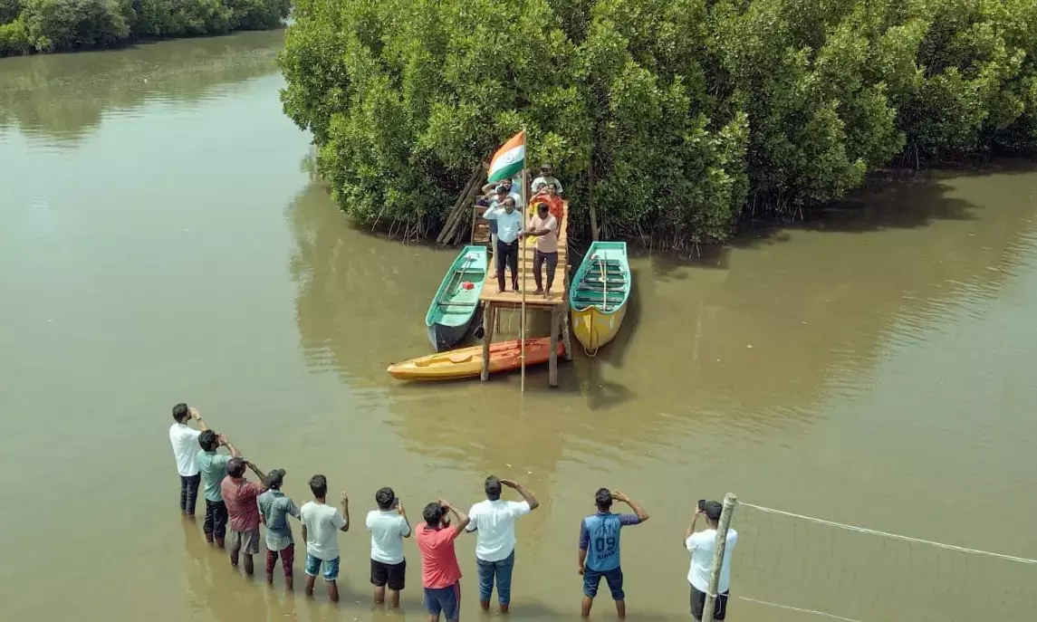 ಕುಂದಾಪುರ, ಆ.15: 77ನೇ ವರ್ಷದ ಸ್ವಾತಂತ್ರ್ಯ ದಿನಾಚರಣೆಯ ಹಿನ್ನೆಲೆ ಯಲ್ಲಿ ಸಾಲಿಗ್ರಾಮ ಕಯಾಕಿಂಗ್ ತಂಡ ವಿಭಿನ್ನ ವಾಗಿ ರಾಷ್ಟ್ರಪ್ರೇಮವನ್ನು ಮೆರೆಯುವ ಪ್ರಯತ್ನ ಮಾಡಿದೆ.