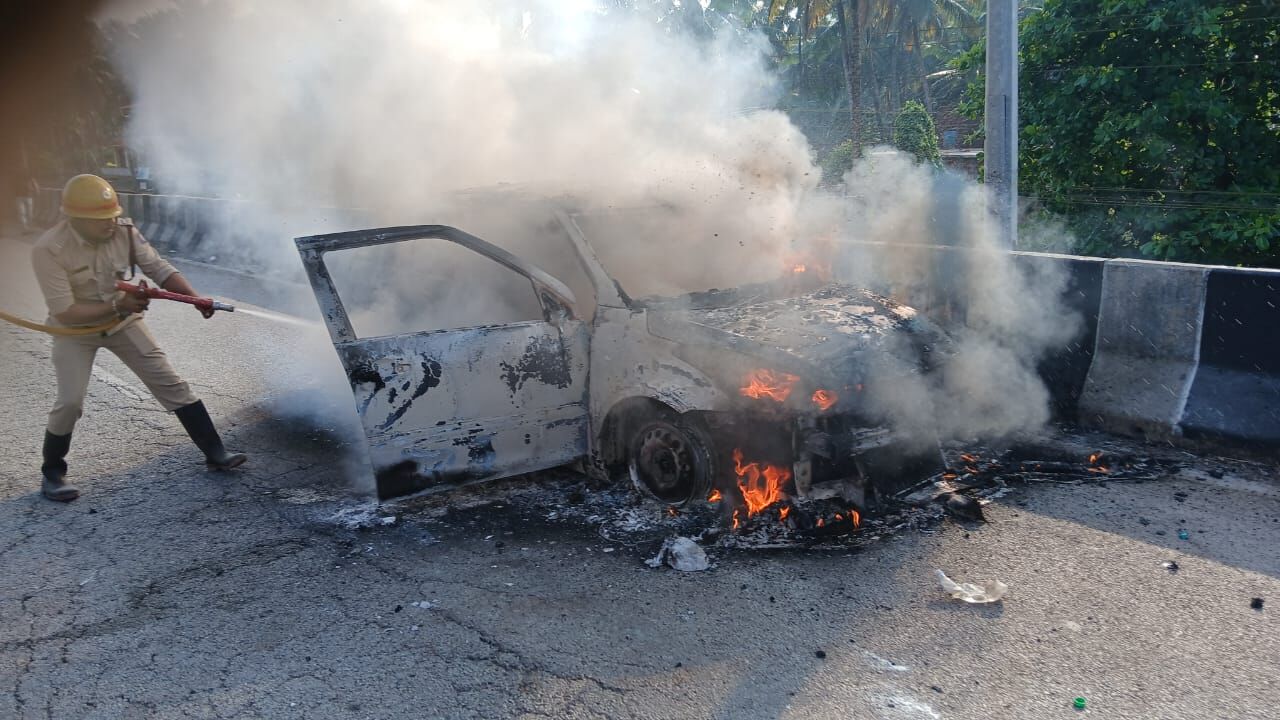 ಬೈಂದೂರು: ರಸ್ತೆ ಮಧ್ಯೆ ಹೊತ್ತಿ ಉರಿದ ಕಾರು