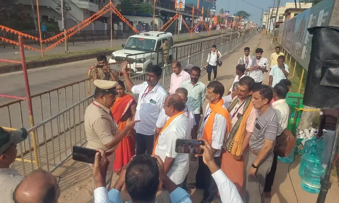 ಉಡುಪಿ: ಪ್ರಧಾನಿ ನರೇಂದ್ರ ಮೋದಿ ಉಡುಪಿ ಆಗಮನಕ್ಕೆ ಕ್ಷಣಗಣನೆ ಆರಂಭವಾಗಿದ್ದು, ಈಗಾಗಲೇ ಎಲ್ಲಾ ಕಡೆ ಬಿಗಿ ಪೊಲೀಸ್ ಬಂದೋಬಸ್ತ್ ಕಲ್ಪಿಸಲಾಗಿದೆ. ಈ ಸಂದರ್ಭದಲ್ಲಿ ಪೊಲೀಸರು ಮತ್ತು ಬಿಜೆಪಿ ಕಾರ್ಯಕರ್ತ ಮಧ್ಯೆ ಮಾತಿನ ಚಕಮಕಿ ನಡೆದ ಬಗ್ಗೆ ವರದಿಯಾಗಿದೆ.