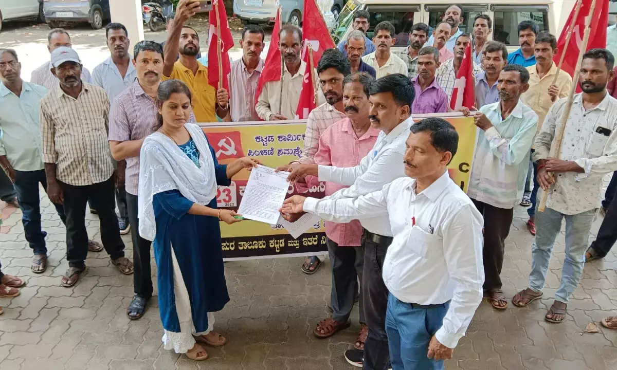 ಕಟ್ಟಡ ಕಾರ್ಮಿಕರ ಬೇಡಿಕೆ ಈಡೇರಿಕೆಗೆ ಆಗ್ರಹ: ತಾಲೂಕು ಕಚೇರಿ ಸಹಿತ ಗ್ರಾಪಂಗಳ ಕಚೇರಿ ಎದುರು ಧರಣಿ