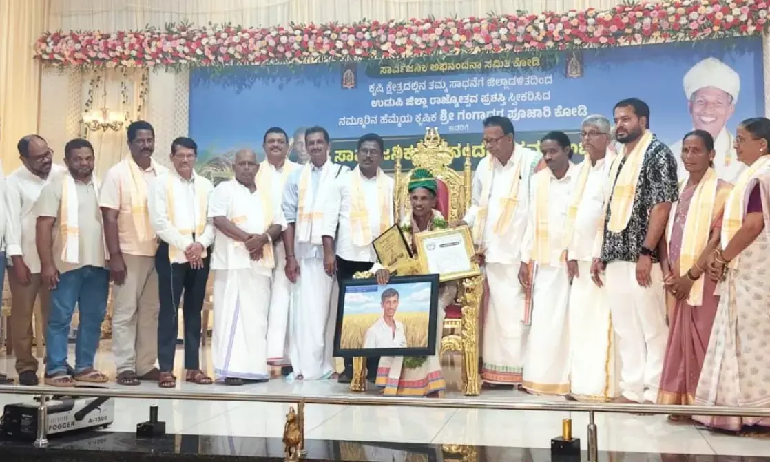ಜಿಲ್ಲಾ ರಾಜ್ಯೋತ್ಸವ ಪ್ರಶಸ್ತಿ ಪುರಸ್ಕೃತ ಕೃಷಿಕ ಗಂಗಾಧರ ಪೂಜಾರಿಗೆ ಹುಟ್ಟೂರ ಸನ್ಮಾನ