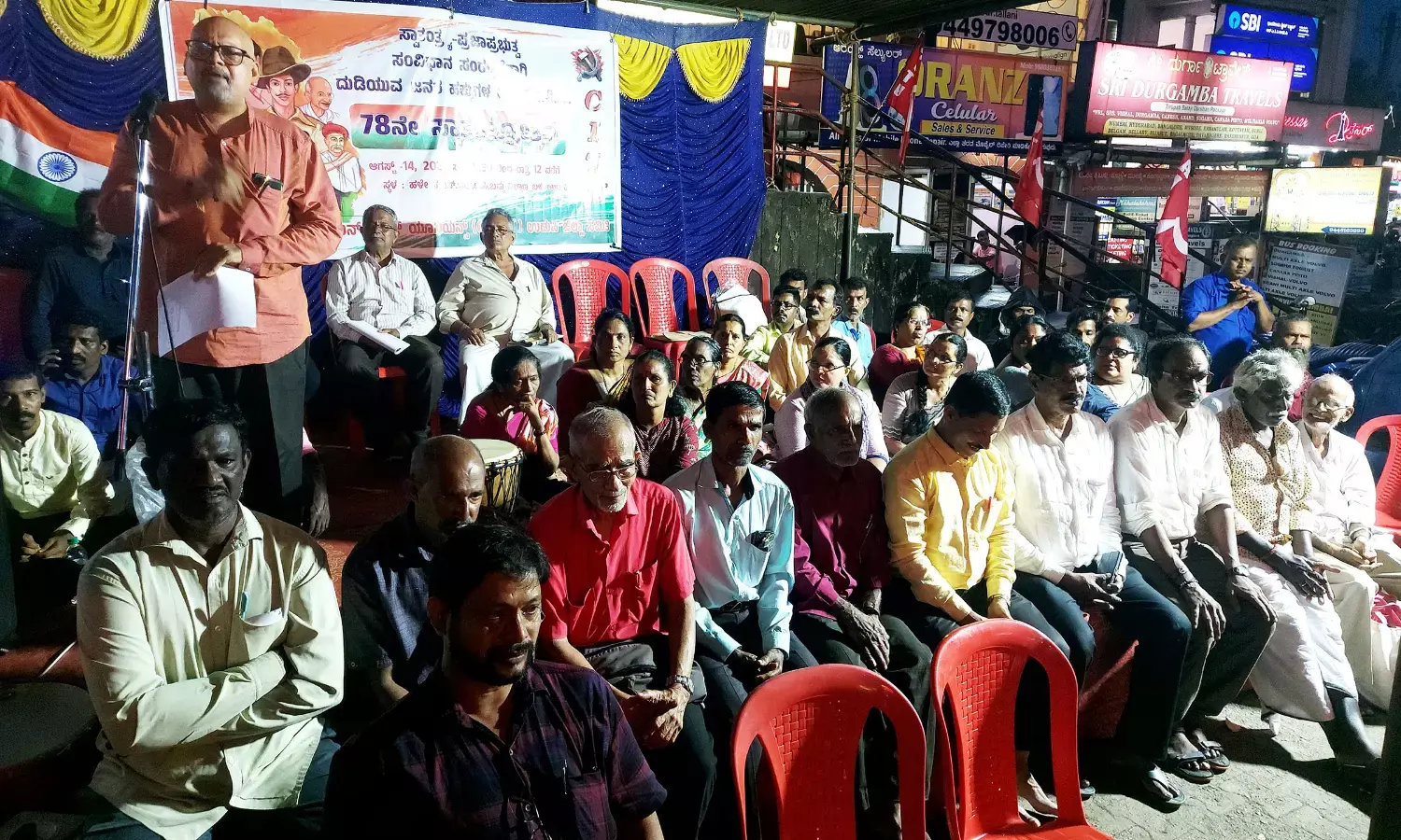 ದೇಶದ ಸ್ವಾತಂತ್ರ್ಯ ಪ್ರಜಾಪ್ರಭುತ್ವ ಸಂವಿಧಾನದ ಸಂರಕ್ಷಣೆಗಾಗಿ, ಕಾರ್ಮಿಕ ವರ್ಗದ ಹಕ್ಕುಗಳ ಉಳಿವಿಗಾಗಿ, ಕೇಂದ್ರ ಸರಕಾರದ ಕಾರ್ಪೊರೇಟ್ ಪರ ನೀತಿಗಳನ್ನು ಹಿಮ್ಮೆಟ್ಟಿಸಲು ಸಿಐಟಿಯು, ಎಐಎಡಬ್ಲ್ಯುಯು ಹಾಗೂ ಎಐಕೆಎಸ್ ಉಡುಪಿ ಜಿಲ್ಲಾ ಸಮಿತಿಗಳ ನೇತೃತ್ವದಲ್ಲಿ ಸ್ವಾತಂತ್ರ್ಯ ದಿನಾಚರಣೆಯ ಮುನ್ನಾ ದಿನವಾದ ಇಂದು ಉಡುಪಿ ನಗರದ ಹಳೆ ಸರಕಾರಿ ಬಸ್ ನಿಲ್ದಾಣ ಬಳಿ ಹಮ್ಮಿಕೊಳ್ಳಲಾದ ಅಹೋರಾತ್ರಿ ಧರಣಿಯನ್ನು ಉದ್ಘಾಟಿಸಿ ಅವರು ಮಾತನಾಡುತಿದ್ದರು.