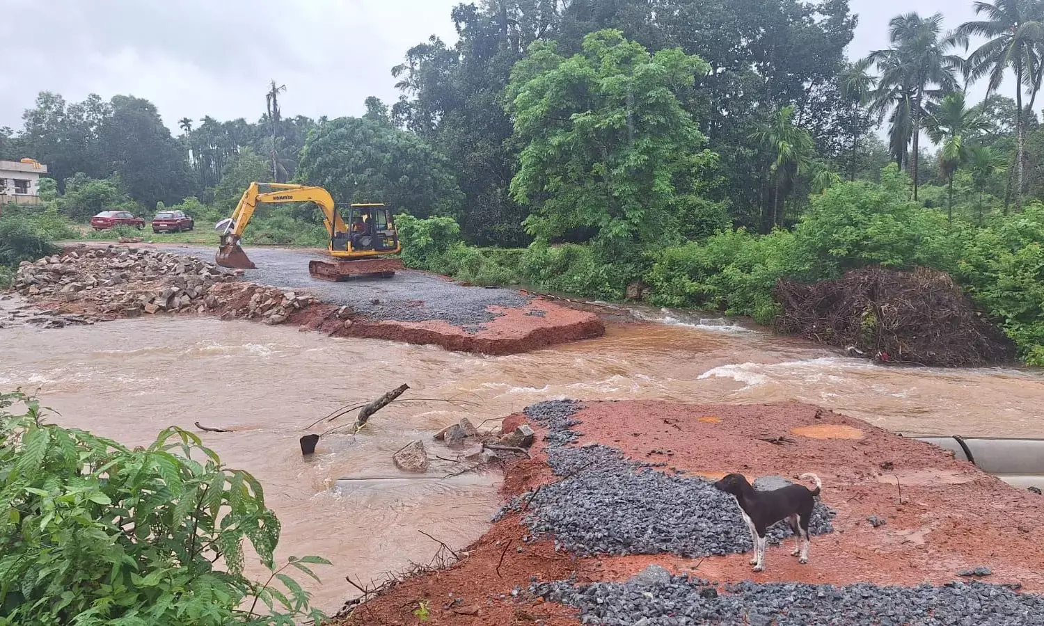 ಇಲ್ಲಿ ಈ ಹಿಂದೆ ಇದ್ದ ಹಳೆ ಸೇತುವೆಯನ್ನು ಲೋಕೋಪಯೋಗಿ ಇಲಾಖೆ ತೆರವು ಮಾಡಿ ಹೊಸ ಸೇತುವೆ ಕಾಮಗಾರಿ ಆರಂಭಿಸಿತ್ತು. ಕಾಮಗಾರಿ ನಡೆಯುತ್ತಿರುವ ಹಿನ್ನೆಲೆಯಲ್ಲಿ ವಾಹನ ಸಂಚಾರಕ್ಕೆ ಪರ್ಯಾಯ ಮಣ್ಣಿನ ರಸ್ತೆಯನ್ನು ಅಲ್ಲೇ ಸಮೀಪ ನಿರ್ಮಿಸಲಾಗಿತ್ತು. ಇದೀಗ ವಿಪರೀತ ಮಳೆಯಿಂದ ನೀರಿನ ಹರಿವು ಹೆಚ್ಚಳವಾಗಿ ಮಣ್ಣಿನ ರಸ್ತೆ ಕೊಚ್ಚಿಕೊಂಡು ಹೋಗಿರುವುದಾಗಿ ತಿಳಿದುಬಂದಿದೆ.