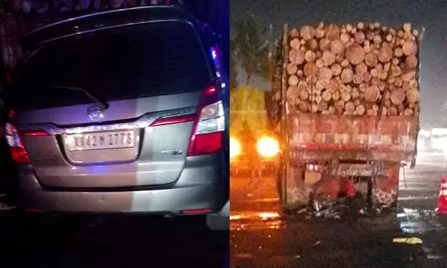 ಮರ ದಿಮ್ಮಿಗಳನ್ನು ಹೇರಿಕೊಂಡಿದ್ದ ಲಾರಿಯನ್ನು ಹೆಜಮಾಡಿ ಟೋಲ್ ಗೇಟಿನ ಕೆಲವೇ ಮೀಟರ್ ಗಳ ಅಂತರದಲ್ಲಿ ಪಾರ್ಕ್ ಮಾಡಲಾಗಿತ್ತು. ಇದನ್ನು ಗಮನಿಸದ ಕಾರು ಚಾಲಕ ಹಿಂಬದಿಯಿಂದ ಗುದ್ದಿದ್ದಾನೆ. ಢಿಕ್ಕಿಯ ತೀವ್ರತೆಗೆ ಕಾರು ನಜ್ಜುಗುಜ್ಜಾಗಿದೆ.