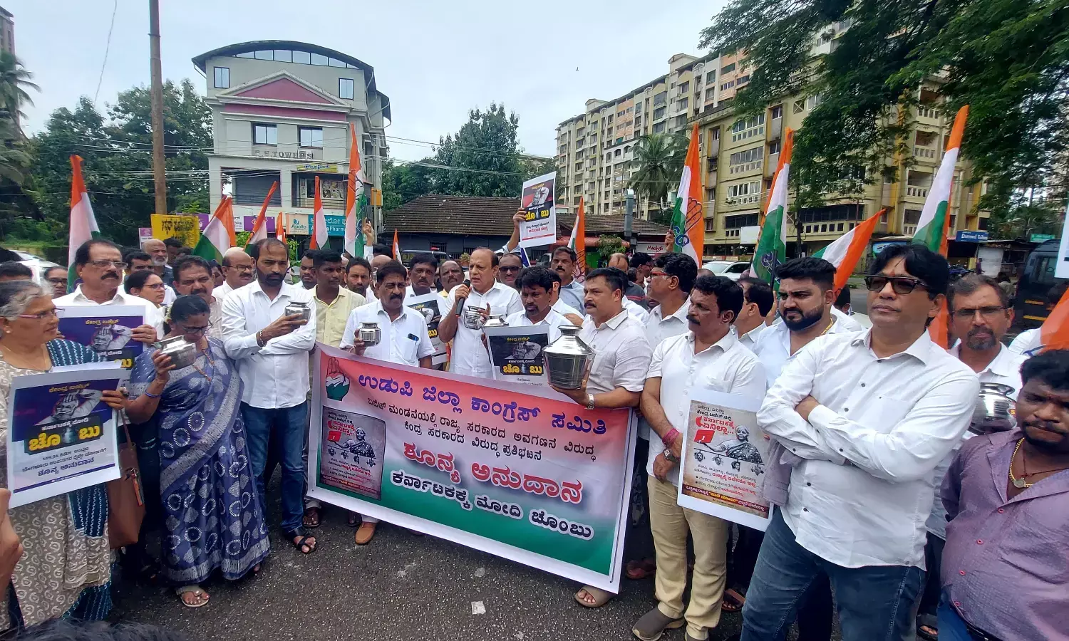 ಕೇಂದ್ರ ಬಜೆಟ್ ನಲ್ಲಿ ಕರ್ನಾಟಕದ ಅವಗಣನೆ: ಉಡುಪಿ ಕಾಂಗ್ರೆಸ್ ನಿಂದ ಚೊಂಬು ಹಿಡಿದು ಪ್ರತಿಭಟನೆ