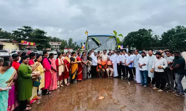 ಇಂದು ಕಾರ್ಕಳದ ಬಂಡಿಮಠ ಬಸ್ಸ್ ನಿಲ್ದಾಣದಲ್ಲಿ ಸರ್ಕಾರಿ ಬಸ್ಸನ್ನು ಸಿಂಗರಿಸಲಾಯಿತು.ಬಸ್ಸಿನಲ್ಲಿ ಕರ್ತವ್ಯ ನಿರ್ವಹಿಸುವ ಚಾಲಕ ನಿರ್ವಾಹಕರಾದ ಕೇಶವ.ಜಿ.ಹೆಚ್, ಶಿವಪುತ್ರ ಕುಂಬಾರ ಇವರಿಗೆ ಶಾಲು, ಫಲಪುಷ್ಟ ಕಾಣಿಕೆ ನೀಡಿ ಸನ್ಮಾನಿಸಲಾಯಿತು.
