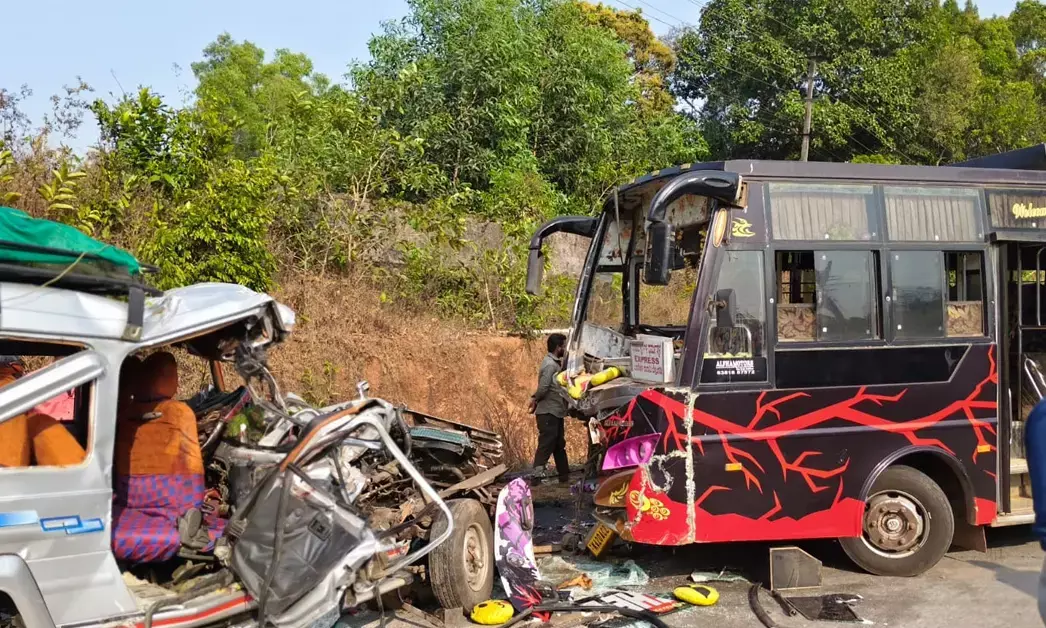ಕಾರ್ಕಳ, ಜ.23: ಖಾಸಗಿ ಬಸ್ಸೊಂದು ತುಫಾನ್ ವಾಹನಕ್ಕೆ ಢಿಕ್ಕಿ ಹೊಡೆದ ಪರಿಣಾಮ ಮೂವರು ಮೃತಪಟ್ಟು ಆರು ಮಂದಿ ಗಾಯಗೊಂಡ ಭೀಕರ ಘಟನೆ ಮಿಯಾರು ಕಂಬಳಕ್ರಾಸ್ ಬಳಿ ಶುಕ್ರವಾರ ಮಧ್ಯಾಹ್ನ ವೇಳೆ ನಡೆದಿದೆ.
