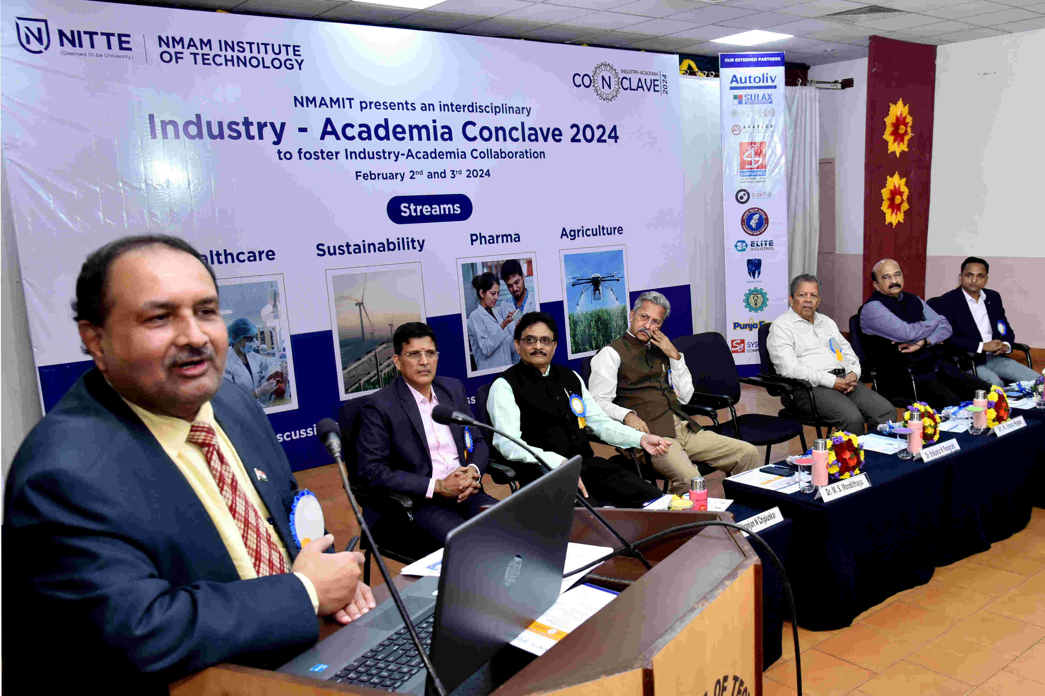 ವೇದಿಕೆಯಲ್ಲಿ ಉಪಸ್ಥಿತರಿದ್ದ ಗೌರವ ಅತಿಥಿಗಳಾದ ನಿಟ್ಟೆ (ಡೀಮ್ಡ್ ಟು ಬಿ ಯೂನಿವರ್ಸಿಟಿ) ಕುಲಪತಿ ಡಾ.ಎಂ.ಎಸ್.ಮೂಡಿತ್ತಾಯ ಮತ್ತು ನಿಟ್ಟೆಯ ತಾಂತ್ರಿಕ ಶಿಕ್ಷಣ ವಿಭಾಗದ ಉಪಾಧ್ಯಕ್ಷ ಡಾ.ಗೋಪಾಲ್ ಮುಗೇರಾಯ ಮಾತನಾಡಿ, ತಾಂತ್ರಿಕ ಶಿಕ್ಷಣದ ವಿಕಸನಗೊಳ್ಳುತ್ತಿರುವ ಸಂದರ್ಭದಲ್ಲಿ ಉದ್ಯಮ ಮತ್ತು ಶೈಕ್ಷಣಿಕ ಸಮಾವೇಶದಂತಹ ಸಹಯೋಗದ ವೇದಿಕೆಗಳ ಪ್ರಮುಖ ಪಾತ್ರದ ಬಗ್ಗೆ ತಮ್ಮ ದೃಷ್ಟಿಕೋನಗಳನ್ನು ಹಂಚಿಕೊಂಡರು.
