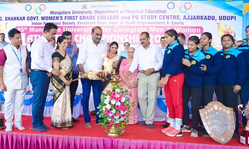 ಉಡುಪಿ, ನ.25: ಮಂಗಳೂರು ವಿಶ್ವವಿದ್ಯಾನಿಲಯ ದೈಹಿಕ ಶಿಕ್ಷಣ ವಿಭಾಗ ಮತ್ತು ಅಜ್ಜರಕಾಡು ಡಾ.ಜಿ.ಶಂಕರ್ ಸರಕಾರಿ ಮಹಿಳಾ ಪ್ರಥಮ ದರ್ಜೆ ಕಾಲೇಜು ಮತ್ತು ಸ್ನಾತಕೋತ್ತರ ಅಧ್ಯಯನ ಕೇಂದ್ರದ ಜಂಟಿ ಆಶ್ರಯದಲ್ಲಿ ಅಜ್ಜರಕಾಡಿನ ಜಿಲ್ಲಾ ಮಹಾತ್ಮ ಗಾಂಧೀಜಿ ಕ್ರೀಡಾಂಗಣದಲ್ಲಿ ಮಂಗಳವಾರ ಆಯೋಜಿಸಲಾದ 45ನೇ ಮಂಗಳೂರು ವಿಶ್ವವಿದ್ಯಾನಿಲಯ ಮಟ್ಟದ ಅಂತರ್ ಕಾಲೇಜು ಕ್ರೀಡಾಕೂಟಕ್ಕೆ ಚಾಲನೆ ನೀಡಲಾಯಿತು.