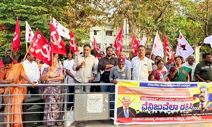 ಮಂಗಳೂರು: ವೆನೆಜುವೆಲಾ ದೇಶದ ಮೇಲೆ ಅಮೇರಿಕಾ ದಾಳಿ ಖಂಡಿಸಿ ಪ್ರತಿಭಟನೆ