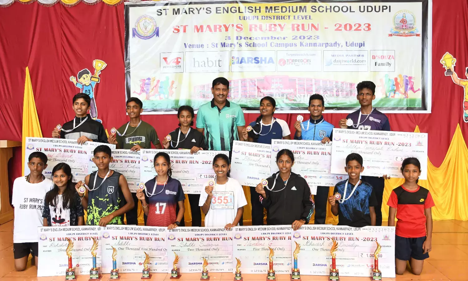 ಕಾರ್ಕಳ: ಉಡುಪಿಯ ಸೈಂಟ್ ಮೇರಿಸ್ ಆಂಗ್ಲ ಮಾಧ್ಯಮ ಶಾಲೆಯಲ್ಲಿ ನಡೆದ ಉಡುಪಿ ಜಿಲ್ಲಾ ಮಟ್ಟದ ಸೈಂಟ್ ಮೇರೀಸ್ ರೂಬಿ ರನ್-2023 ಕಾರ್ಯಕ್ರಮದಲ್ಲಿ ನಿಟ್ಟೆಯ ಡಾ. ಎನ್.ಎಸ್.ಎ.ಎಂ. ಹಲವು ಪ್ರಶಸ್ತಿಗಳನ್ನು ಜಯಿಸಿ ಉತ್ತಮ ಸಾಧನೆ ಮಾಡಿದೆ.