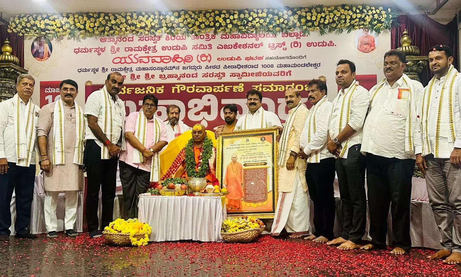 ಶ್ರೀಬ್ರಹ್ಮಾನಂದ ಸರಸ್ವತಿ ಸ್ವಾಮೀಜಿಯನ್ನು ರಾಜ್ಯ ಮೀನುಗಾರಿಕೆ, ಬಂದರು ಹಾಗೂ ಒಳನಾಡು ಜಲ ಸಾರಿಗೆ ಸಚಿವ ಮಾಂಕಾಳ ವೈದ್ಯ ಅಭಿನಂದಿಸಿದರು. ಮಾಜಿ ಶಾಸಕ ಕೆ.ರಘುಪತಿ ಭಟ್ ಅಭಿನಂದನಾ ನುಡಿಗಳನ್ನಾಡಿದರು. ಅಧ್ಯಕ್ಷತೆ ಯನ್ನು ಆತ್ಮಾನಂದ ಸರಸ್ವತಿ ಕಿರಿಯ ತಾಂತ್ರಿಕ ಮಹಾವಿದ್ಯಾಲಯ ಬಿಲ್ಲಾಡಿ ಅಧ್ಯಕ್ಷ ಓಬು ಪೂಜಾರಿ ವಹಿಸಿದ್ದರು.