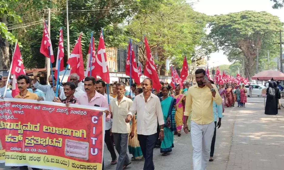 ಉಡುಪಿ ಜಿಲ್ಲಾ ಹೆಂಚು ಕಾರ್ಮಿಕರ ಸಂಘ(ಸಿಐಟಿಯು) ಕುಂದಾಪುರ ವತಿಯಿಂದ ಹೆಂಚು ಉದ್ಯಮಕ್ಕೆ ಬೇಕಾದ ಆವೆಮಣ್ಣನ್ನು ತೆಗೆಯಲು ಎದುರಾಗುತ್ತಿರುವ ಸಮಸ್ಯೆಯನ್ನು ವಿರೋಧಿಸಿ ಕುಂದಾಪುರ ಶಾಸ್ತ್ರೀ ಸರ್ಕಲ್ನಲ್ಲಿ ಮಂಗಳವಾರ ಹಮ್ಮಿಕೊಳ್ಳಲಾದ ಪ್ರತಿಭಟನಾ ಸಭೆಯನ್ನುದ್ದೇಶಿಸಿ ಅವರು ಮಾತನಾಡುತಿದ್ದರು.