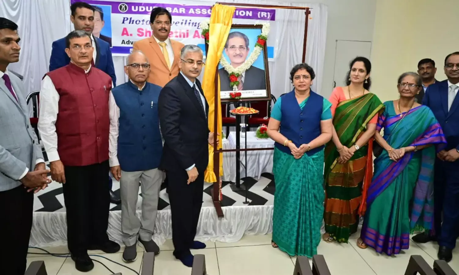 ಉಡುಪಿ ವಕೀಲರ ಸಂಘದ ವತಿಯಿಂದ, ಹಿರಿಯ ವಕೀಲಲಾಗಿದ್ದ ದಿ. ಅಲೆವೂರು ಶ್ರೀಪತಿ ಆಚಾರ್ಯರ ಭಾವಚಿತ್ರವನ್ನು ಶನಿವಾರ ಜಿಲ್ಲಾ ನ್ಯಾಯಾಲಯ ಸಭಾಂಗಣದಲ್ಲಿ ಅನಾವರಣಗೊಳಿಸಿ ಅವರು ಮಾತನಾಡುತಿದ್ದರು.