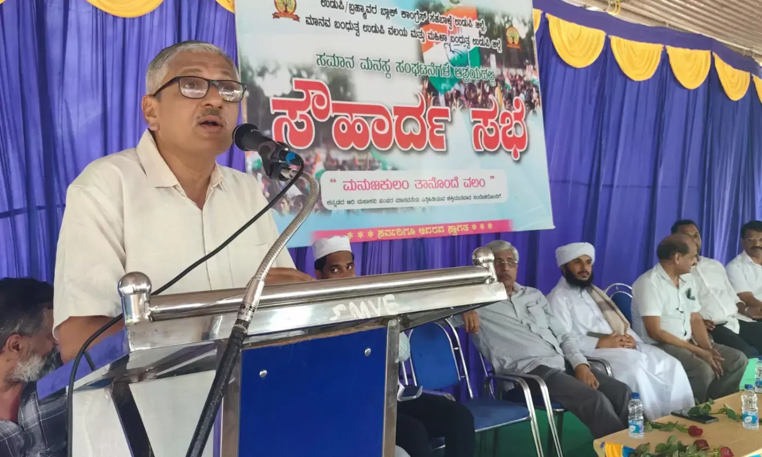 ಉಡುಪಿ ಬ್ಲಾಕ್ ಕಾಂಗ್ರೆಸ್ ಸಮಿತಿ ಮತ್ತು ಬ್ರಹ್ಮಾವರ ಬ್ಲಾಕ್ ಕಾಂಗ್ರೆಸ್ ಸಮಿತಿ, ಸಹಬಾಳ್ವೆ ಮತ್ತು ಮಾನವ ಬಂಧುತ್ವ ಉಡುಪಿ ವಲಯ ಹಾಗೂ ಸಮಾನ ಮನಸ್ಕ ಸಂಘಟನೆಗಳ ಆಶ್ರಯದಲ್ಲಿ ರವಿವಾರ ನೀಲಾವರದಲ್ಲಿ ಹಮ್ಮಿಕೊಳ್ಳಲಾದ ಸಾಮರಸ್ಯ ನಡಿಗೆ -ಸೌಹಾರ್ದ ಸಭೆಯನ್ನುದ್ದೇಶಿಸಿ ಅವರು ಮಾತನಾಡುತಿದ್ದರು.