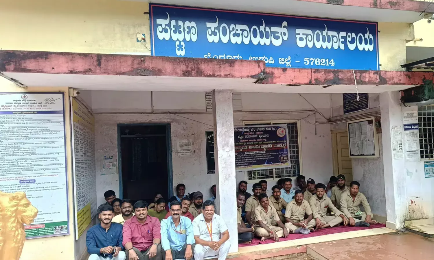 ಬೈಂದೂರು ಪಟ್ಟಣ ಪಂಚಾಯತ್ ಎದುರು ಪೌರ ನೌಕರರ ಧರಣಿ