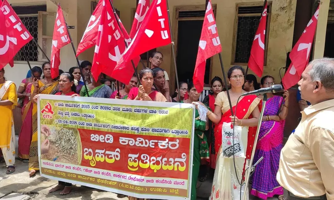 ತುಟ್ಟಿಭತ್ಯೆ, ಕನಿಷ್ಟಕೂಲಿಗೆ ಒತ್ತಾಯಿಸಿ ಬೀಡಿ ಕಾರ್ಮಿಕರಿಂದ ಧರಣಿ