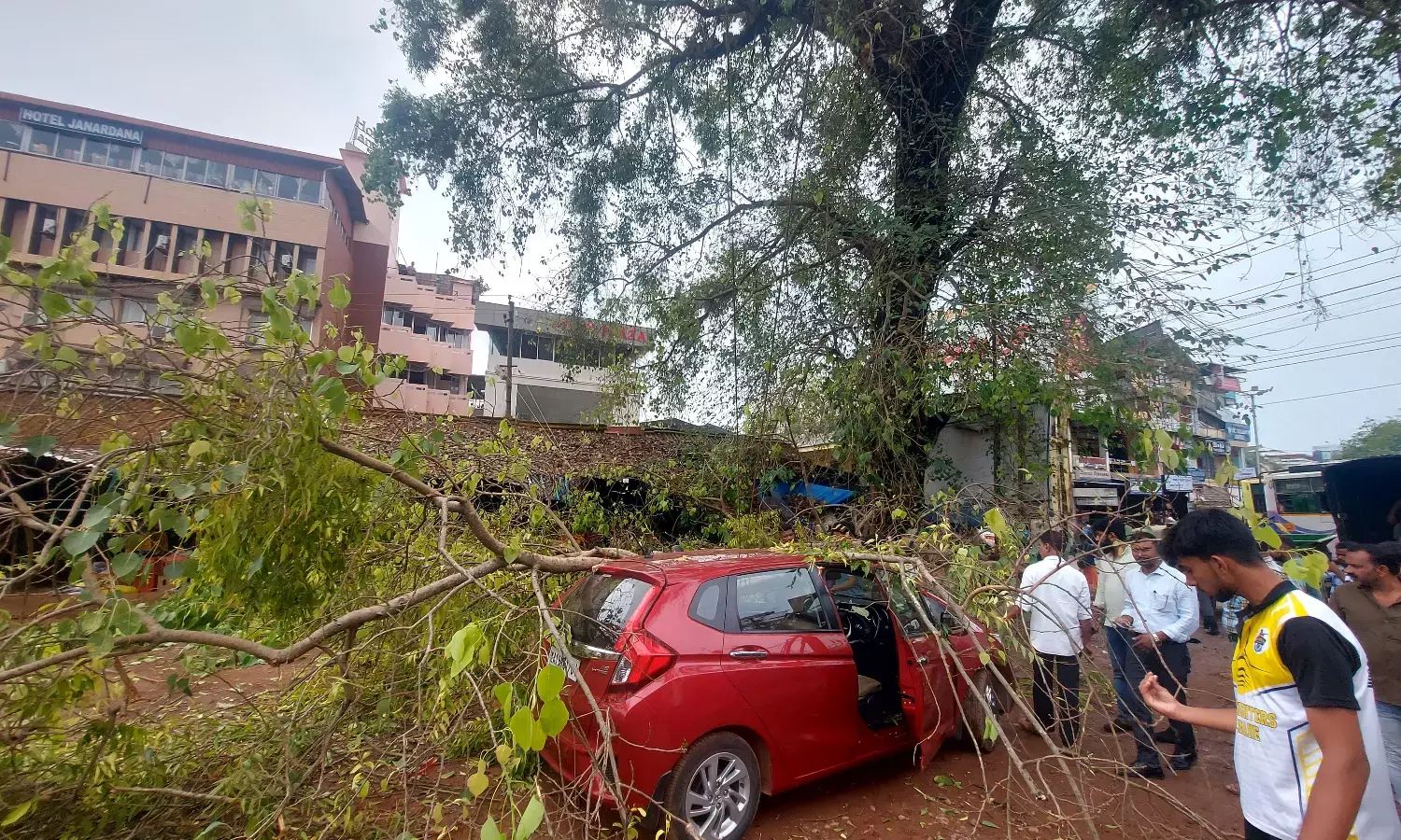 ಉಡುಪಿ: ಮಾರುಕಟ್ಟೆಯಲ್ಲಿ ಮರದ ಕೊಂಬೆ ಮುರಿದು ಬಿದ್ದು ಅಂಗಡಿ, ಕಾರಿಗೆ ಹಾನಿ