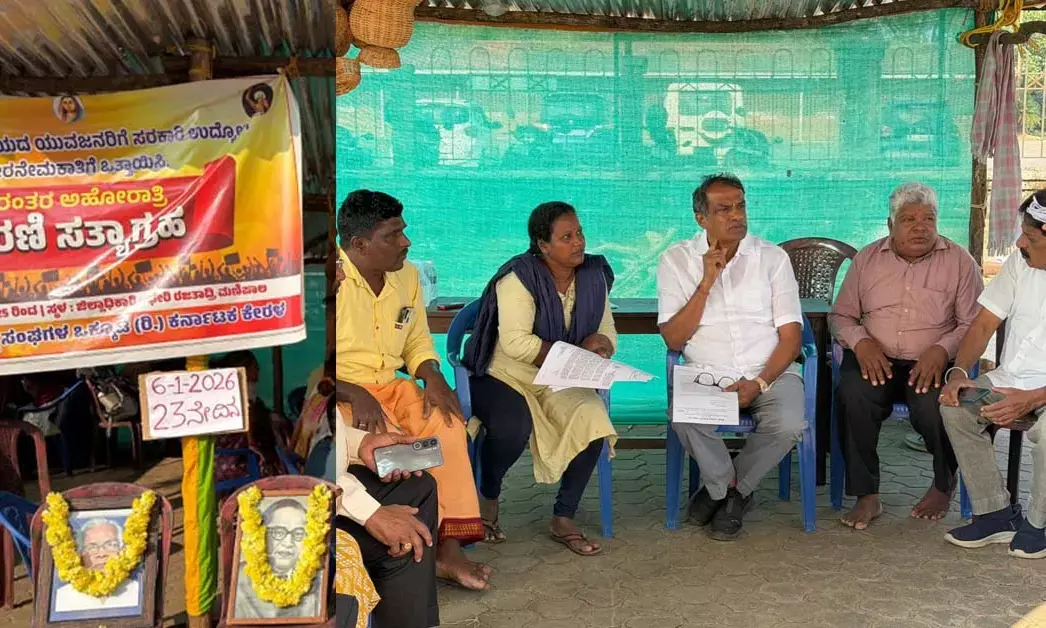 ಉಡುಪಿ, ಜ.6: ಕೊರಗ ಅಭಿವೃದ್ಧಿ ಸಂಘಗಳ ಒಕ್ಕೂಟ ಕರ್ನಾಟಕ-ಕೇರಳ ನೇತೃತ್ವದಲ್ಲಿ ಕೊರಗ ಸಮುದಾಯದ ಯುವ ಜನತೆಗೆ ಸರಕಾರಿ ಉದ್ಯೋಗಗಳಲ್ಲಿ ನೇರ ನೇಮಕಾತಿ ಒದಗಿಸುವಂತೆ ಒತ್ತಾಯಿಸಿ ಉಡುಪಿ ಜಿಲ್ಲಾಧಿಕಾರಿ ಕಚೇರಿ ಮುಂದೆ ಹಮ್ಮಿಕೊಳ್ಳಲಾಗಿರುವ ಅಹೋರಾತ್ರಿ ಧರಣಿ ಸತ್ಯಾಗ್ರಹ 23ನೇ ದಿನವಾದ ಮಂಗಳವಾರವೂ ಮುಂದುವರಿದಿದೆ.