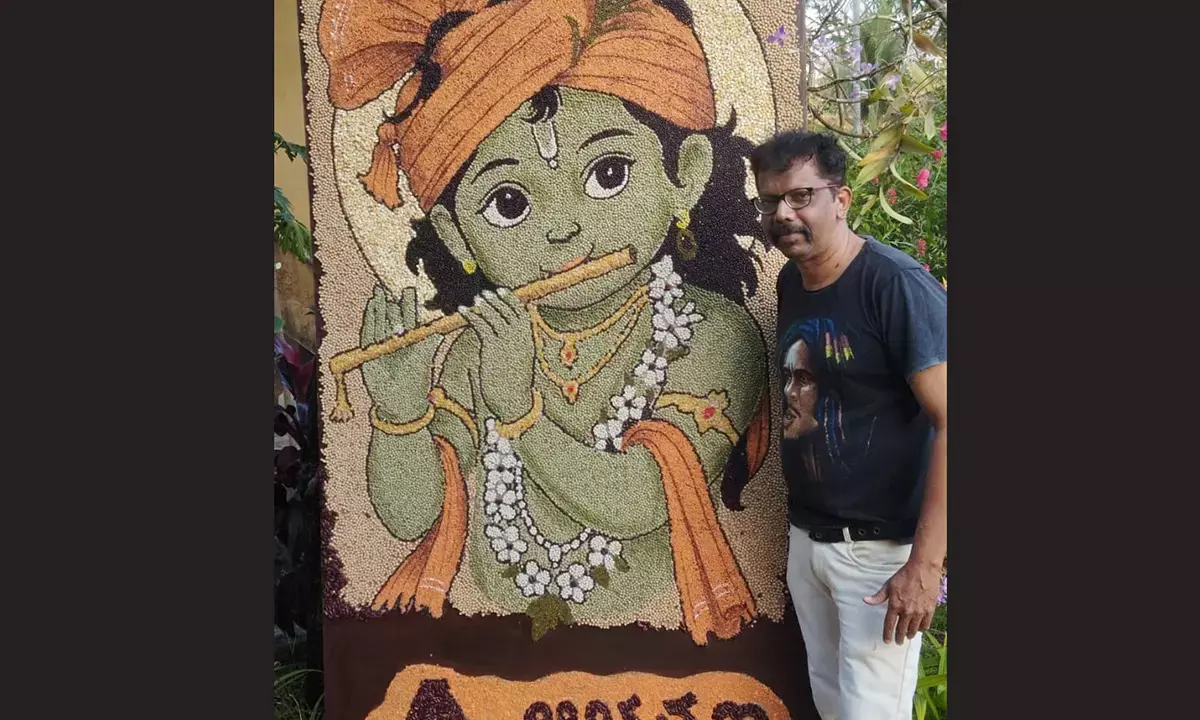 ಉಡುಪಿ: ವಿವಿಧ ಧಾನ್ಯಗಳಲ್ಲಿ ಮೂಡಿಬಂದ ಶ್ರೀಕೃಷ್ಣ