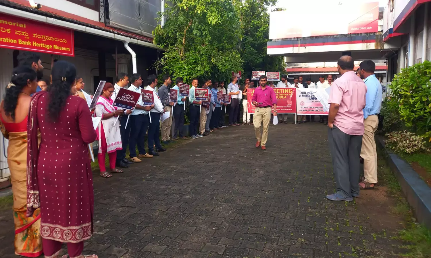 ಉಡುಪಿ: ಯೂನಿಯನ್ ಬ್ಯಾಂಕ್ ಸಿಬ್ಬಂದಿಗಳಿಂದ ಪ್ರತಿಭಟನೆ