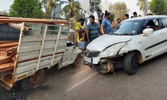 ಕುಂದಾಪುರ: ಅಕ್ರಮವಾಗಿ ಗೋವುಗಳನ್ನು ಸಾಗಿಸುತ್ತಿದ್ದ ಕಾರೊಂದು ಬೊಲೆರೋ ವಾಹನಕ್ಕೆ ಢಿಕ್ಕಿ ಹೊಡೆದಿದ್ದು, ಕಾರನ್ನು ರಸ್ತೆ ಮಧ್ಯೆಯೇ ಬಿಟ್ಟು ಆರೋಪಿಗಳು ಪರಾರಿಯಾದ ಘಟನೆ ಗಂಗೊಳ್ಳಿ ಪೊಲೀಸ್ ಠಾಣಾ ವ್ಯಾಪ್ತಿಯ ಗುಡ್ಡಮ್ಮಾಡಿ ಕ್ರಾಸ್ ಬಳಿ ಶುಕ್ರವಾರ ಸಂಜೆ ನಡೆದಿದೆ.