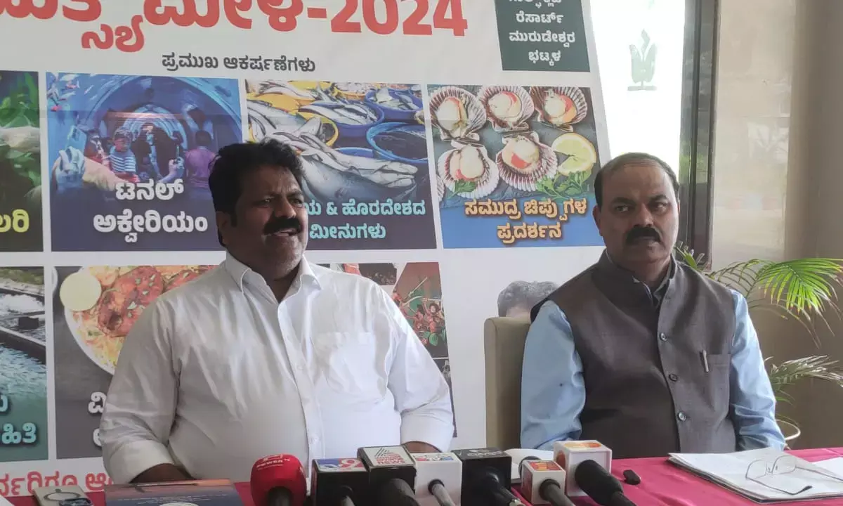 ಭಟ್ಕಳ: ವಿಶ್ವ ಮೀನುಗಾರಿಕಾ ದಿನಾಚರಣೆಯ ಅಂಗವಾಗಿ ನ 21ರಿಂದ 23 ರ ವರೆಗೆ ಮೂರು ದಿನಗಳ ಕಾಲ ಮತ್ಸ್ಯ ಮೇಳ-2024 ಮುರುಡೇಶ್ವರದ ಆರ್.ಎನ್.ಎಸ್. ಗಾಲ್ಫ್ ಕ್ಲಬ್ ರೆಸಾರ್ಟ್ನಲ್ಲಿ ಜರುಗುತ್ತಿದ್ದು ಮುಖ್ಯಮಂತ್ರಿ ಸಿದ್ದರಾಮಯ್ಯ ಹಾಗೂ ಡಿ.ಕೆ.ಶಿವಕುಮಾರ್ ಉದ್ಘಾಟನಾ ಸಮಾರಂಭದಲ್ಲಿ ಭಾಗವಹಿಸಲಿದ್ದಾರೆ ಎಂದು ರಾಜ್ಯ ಮೀನುಗಾರಿಕೆ, ಬಂದರು ಮತ್ತು ಒಳನಾಡು ಜಲಸಾರಿಗೆ ಸಚಿವ ಮಂಕಾಳ್ ವೈದ್ಯ ಹೇಳಿದರು.