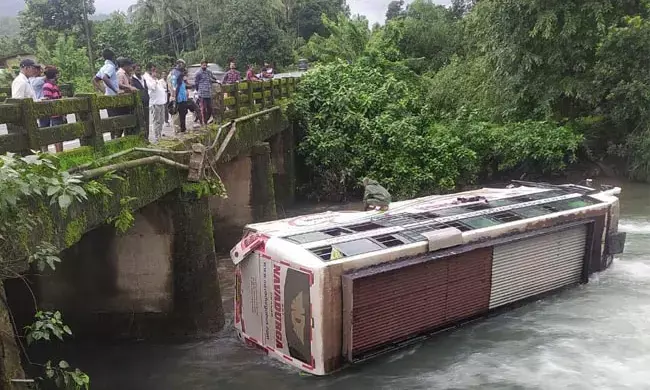 ಯಲ್ಲಾಪುರದಿಂದ ಮಂಗಳೂರು ಕಡೆಗೆ ಸಾಗುತ್ತಿದ್ದ ಬಸ್ ಅಗಸೂರು ಬಳಿ ಚಾಲಕನ ನಿಯಂತ್ರಣ ತಪ್ಪಿ ಸೇತುವೆಯಿಂದ ಕೆಳಕ್ಕೆ ಬಿದ್ದಿದೆ. ಅಪಘಾತ ಸಂಭವಿಸಿದಾಗ ಬಸ್ನಲ್ಲಿ 18 ಮಂದಿ ಪ್ರಯಾಣಿಕರಿದ್ದರು. ಗಂಭೀರವಾಗಿ ಗಾಯಗೊಂಡಿರುವ ಐವರನ್ನು ತಕ್ಷಣವೇ ಮಂಗಳೂರಿನ ಆಸ್ಪತ್ರೆಗೆ ದಾಖಲಿಸಲಾಗಿದೆ. ಸಣ್ಣಪುಟ್ಟ ಗಾಯಗಳಾದ ಇತರ ಪ್ರಯಾಣಿಕರಿಗೆ ಅಂಕೋಲಾ ತಾಲೂಕು ಆಸ್ಪತ್ರೆಯಲ್ಲಿ ಚಿಕಿತ್ಸೆ ನೀಡಲಾಗುತ್ತಿದೆ.