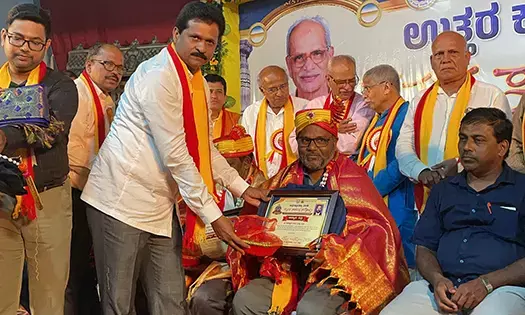 ಶಿರಸಿ: ಉತ್ತರ ಕನ್ನಡ ಜಿಲ್ಲಾ 24ನೇ ಕನ್ನಡ ಸಾಹಿತ್ಯ ಸಮ್ಮೇಳನದ ಸಮಾರೋಪ ಸಮಾರಂಭದಲ್ಲಿ ಮಾಧ್ಯಮ ಕ್ಷೇತ್ರದ ಸಾಧನೆಗಾಗಿ ‘ವಾರ್ತಾಭಾರತಿ’ಯ ಭಟ್ಕಳದ ವರದಿಗಾರ ಮುಹಮ್ಮದ್ ರಝಾ ಮಾನ್ವಿ ಅವರಿಗೆ ಶಿರಸಿ ಶಾಸಕ ಟಿ.ಭೀಮಣ್ಣ ನಾಯ್ಕ ಅವರು ಕಸಾಪ ಗೌರವ ಪುರಸ್ಕಾರ ನೀಡಿ ಸನ್ಮಾನಿಸಿದರು.