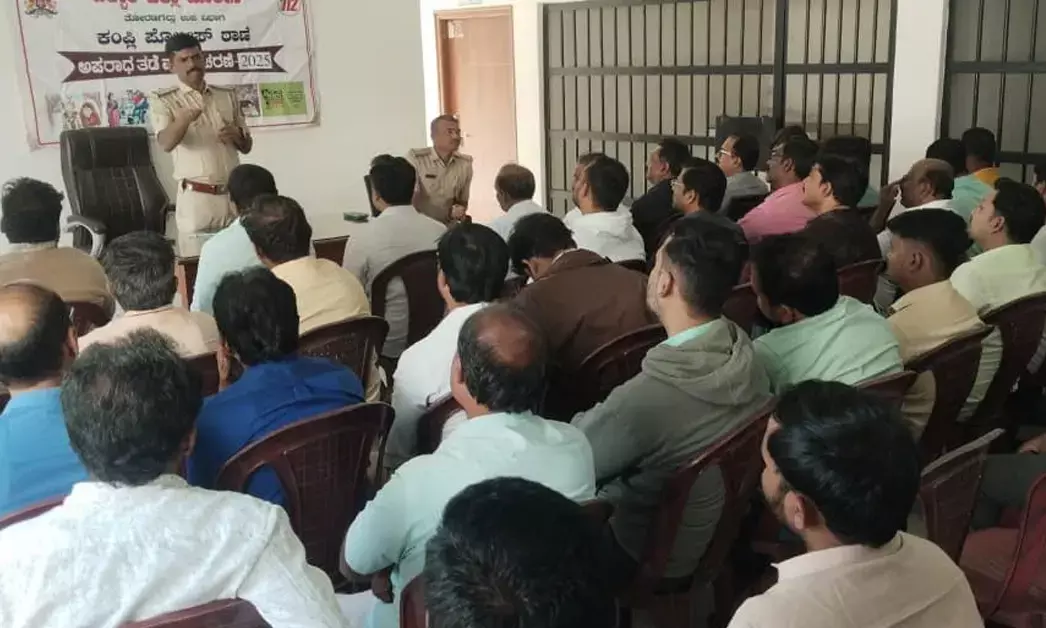 ಕಂಪ್ಲಿ , ಡಿ. 29: ಅಪರಾಧ ತಡೆ ಮಾಸಾಚರಣೆಯ ಕಾರ್ಯಕ್ರಮ ಅಂಗವಾಗಿ ಪಟ್ಟಣದ ಪೊಲೀಸ್ ಠಾಣೆಯಲ್ಲಿ ಬ್ಯಾಂಕ್ ಮತ್ತು ಬಂಗಾರದ ಅಂಗಡಿಗಳ ಮಾಲಕರಿಗೆ ವಿಶೇಷ ಸಭೆ ಆಯೋಜಿಸಲಾಗಿತ್ತು.