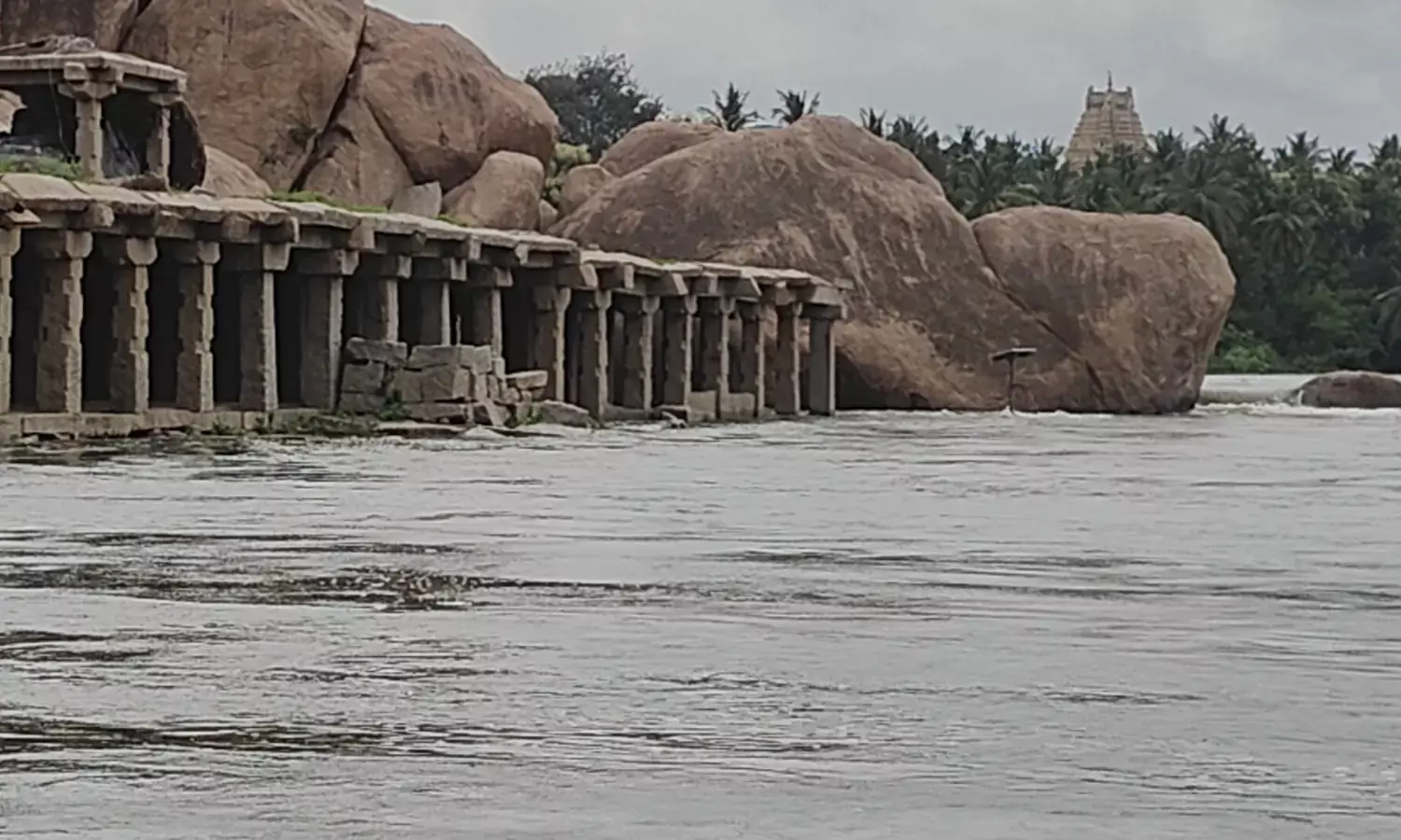 ಹೊಸಪೇಟೆ ತಾಲೂಕಿನ ಐತಿಹಾಸಿಕ ವಿಶ್ವ ಪ್ರಸಿದ್ಧ ಹಂಪಿಯ ನದಿ ಪಾತ್ರದಲ್ಲಿ ಇರುವ ವಿಧಿ ವಿಧಾನ ಮಂಟಪಗಳು ಸಾಲು ಸಾಲು ಮಂಟಪಗಳು ಸೇರಿದಂತೆ ಪುರಂದರ ದಾಸರ ಮಂಟಪ ಸಂಪೂರ್ಣವಾಗಿ ಜಲಾವೃತವಾಗಿದೆ.