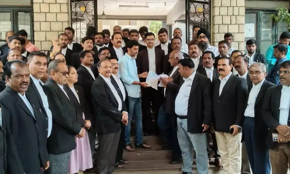 ಜಿಲ್ಲಾ ವಕೀಲರ ಸಂಘದ ಸದಸ್ಯರು ನಗರದ ನ್ಯಾಯಾಲಯ ಆವರಣದಿಂದ ಕಾಲ್ನಡಿಗೆಯ ಮೂಲಕ ಪುನೀತ್ ರಾಜಕುಮಾರ ವೃತ್ತದಿಂದ ತಾಲೂಕು ದಂಡಾಧಿಕಾರಿಯ ಕಚೇರಿಗೆ ಬೃಹತ್ ಪ್ರತಿಭಟನೆ ಹಮ್ಮಿಕೊಂಡಿದ್ದರು.