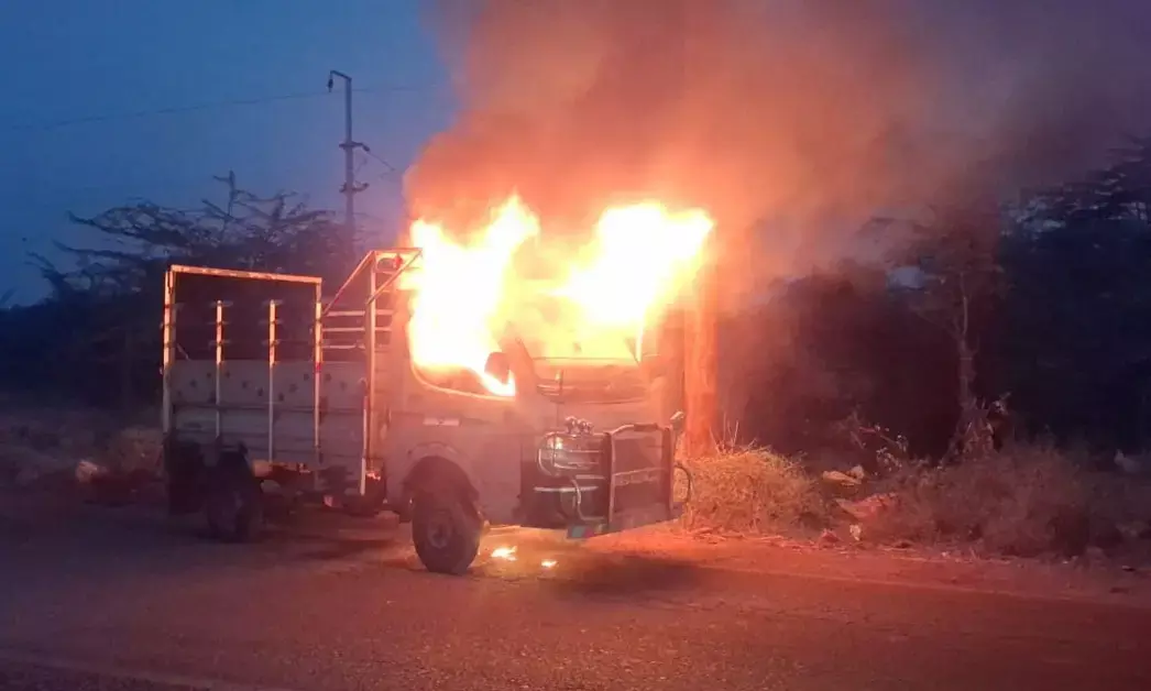 ವಿಜಯನಗರ | ಚಲಿಸುತ್ತಿದ್ದ ಟಾಟಾ ಏಸ್ ವಾಹನ ಬೆಂಕಿಗಾಹುತಿ: ಚಾಲಕ ಅಪಾಯದಿಂದ ಪಾರು