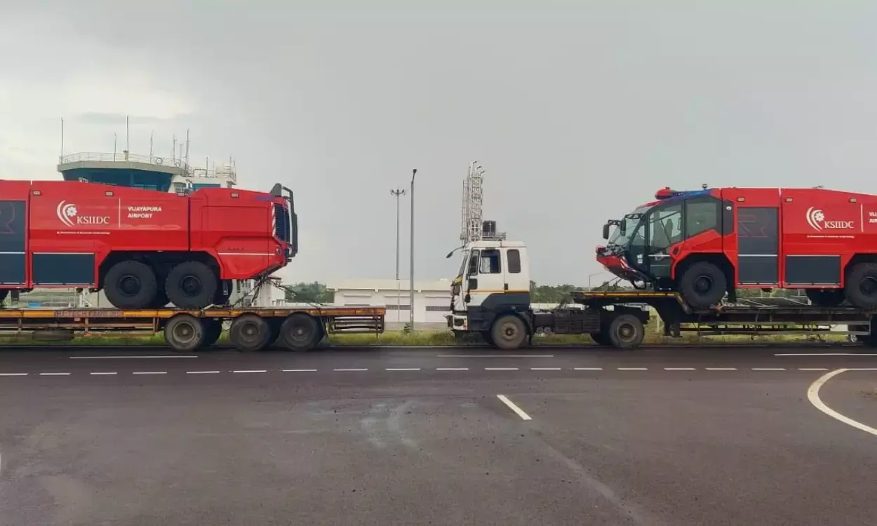 ವಿಜಯಪುರ ವಿಮಾನ ನಿಲ್ದಾಣ : ಆಸ್ಟ್ರಿಯಾದಿಂದ ಬಂದಿಳಿದ 2 ಅಗ್ನಿಶಾಮಕ ವಾಹನ
