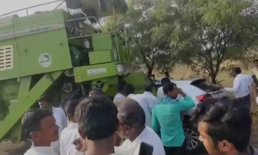ಕಾರಿನಲ್ಲಿ ಯಾದಗಿರಿಯಿಂದ ವಾಪಸ್ ಆಗುತ್ತಿದ್ದ ವೇಳೆ ಬಿಳೆಬಾವಿ ಕ್ರಾಸ್ ಬಳಿ ತೊಗರಿ ಕಟಾವು ಮಷಿನ್ ನಡುವೆ ಮುಖಾಮುಖಿ ಢಿಕ್ಕಿ ಸಂಭವಿಸಿದೆ.