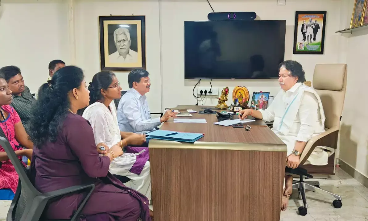 ನಗರಸಭೆ ಪೌರಾಯುಕ್ತರು ಶಾಸಕ ಎಚ್.ಆರ್.ಗವಿಯಪ್ಪರನ್ನು ಭೇಟಿ ಮಾಡಿ 35 ವಾರ್ಡ್ ಗಳ ಮೂಲಸೌಕರ್ಯ ಸೇರಿದಂತೆ ಸಿಸಿ ರಸ್ತೆ ಕಾಮಗಾರಿಗೆ ಒಳಚರಂಡಿ ಕಾಮಗಾರಿ ಕೈಗೊಳ್ಳುವ ಬಗ್ಗೆ ಶಾಸಕರ ಜೊತೆ ಚರ್ಚಿಸಿದರು.