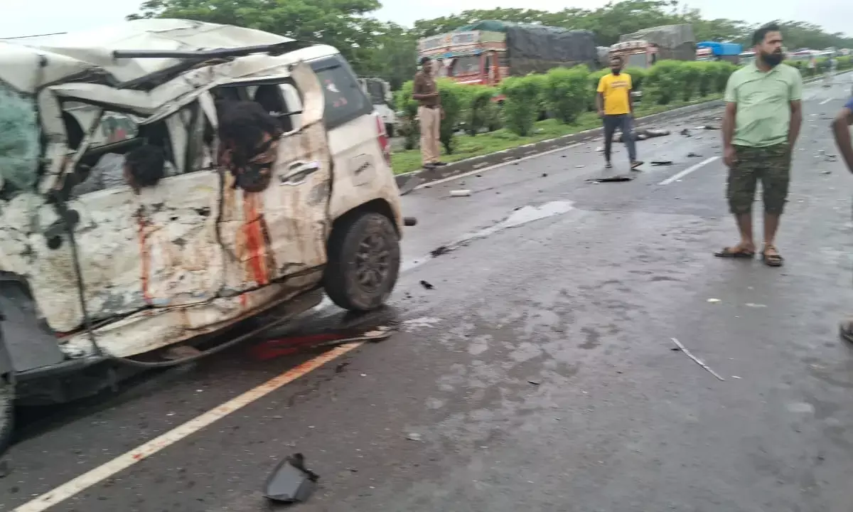 ಸ್ಪಾರ್ಪಿಯೊ ಕಾರು, ಖಾಸಗಿ ಮತ್ತು ಲಾರಿಯೊಂದರ ಮಧ್ಯೆ ಈ ಅಪಘಾತ ಸಂಭವಿಸಿದೆ.