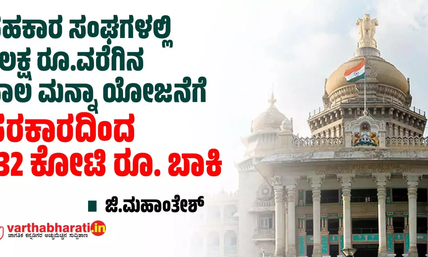 ಸಹಕಾರ ಸಂಘಗಳಲ್ಲಿ 1 ಲಕ್ಷ ರೂ.ವರೆಗಿನ ಸಾಲ ಮನ್ನಾ ಯೋಜನೆಗೆ ಸರಕಾರದಿಂದ 232 ಕೋಟಿ ರೂ. ಬಾಕಿ