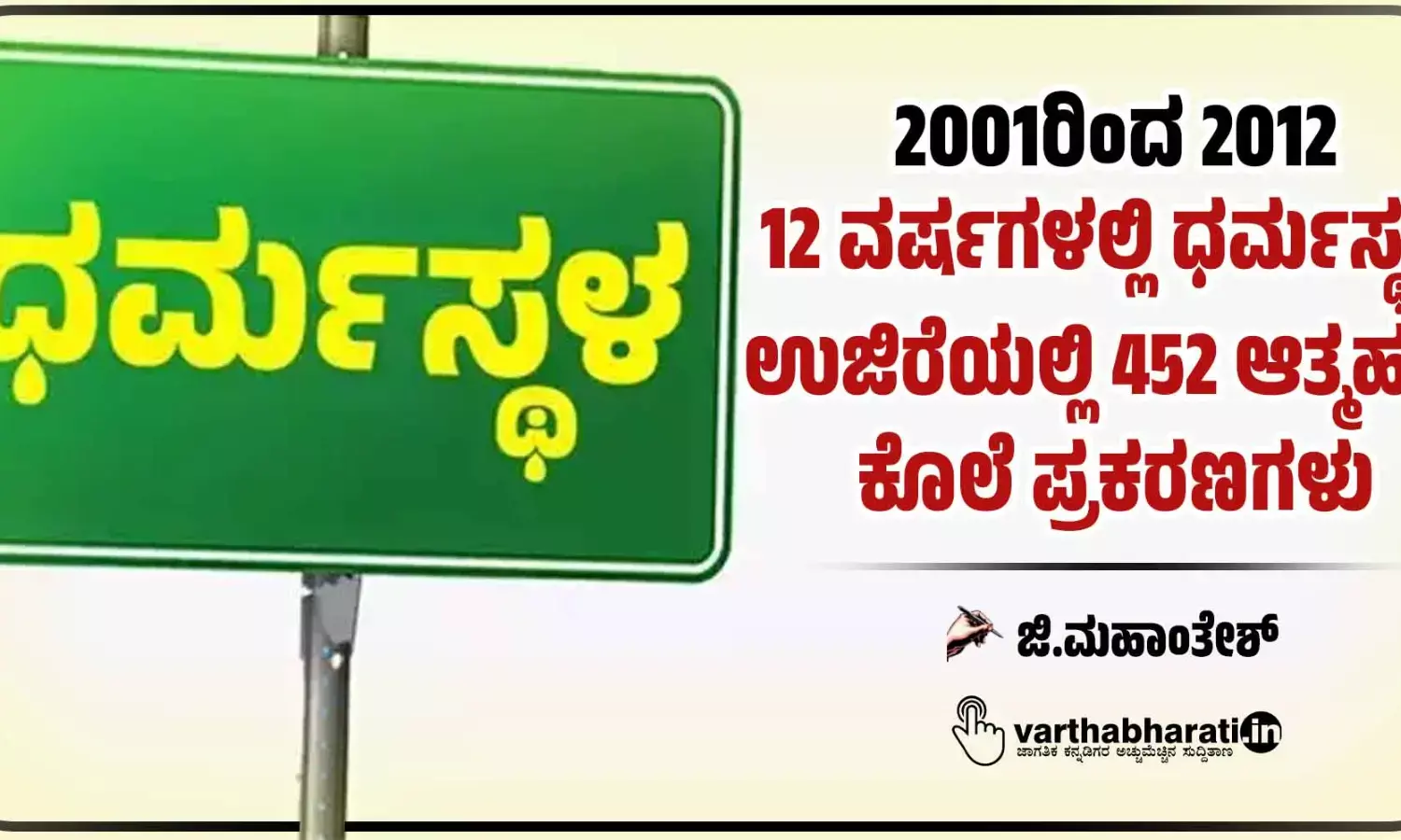 2001ರಿಂದ 2012: 12 ವರ್ಷಗಳಲ್ಲಿ ಧರ್ಮಸ್ಥಳ, ಉಜಿರೆಯಲ್ಲಿ 452 ಆತ್ಮಹತ್ಯೆ, ಕೊಲೆ ಪ್ರಕರಣಗಳು