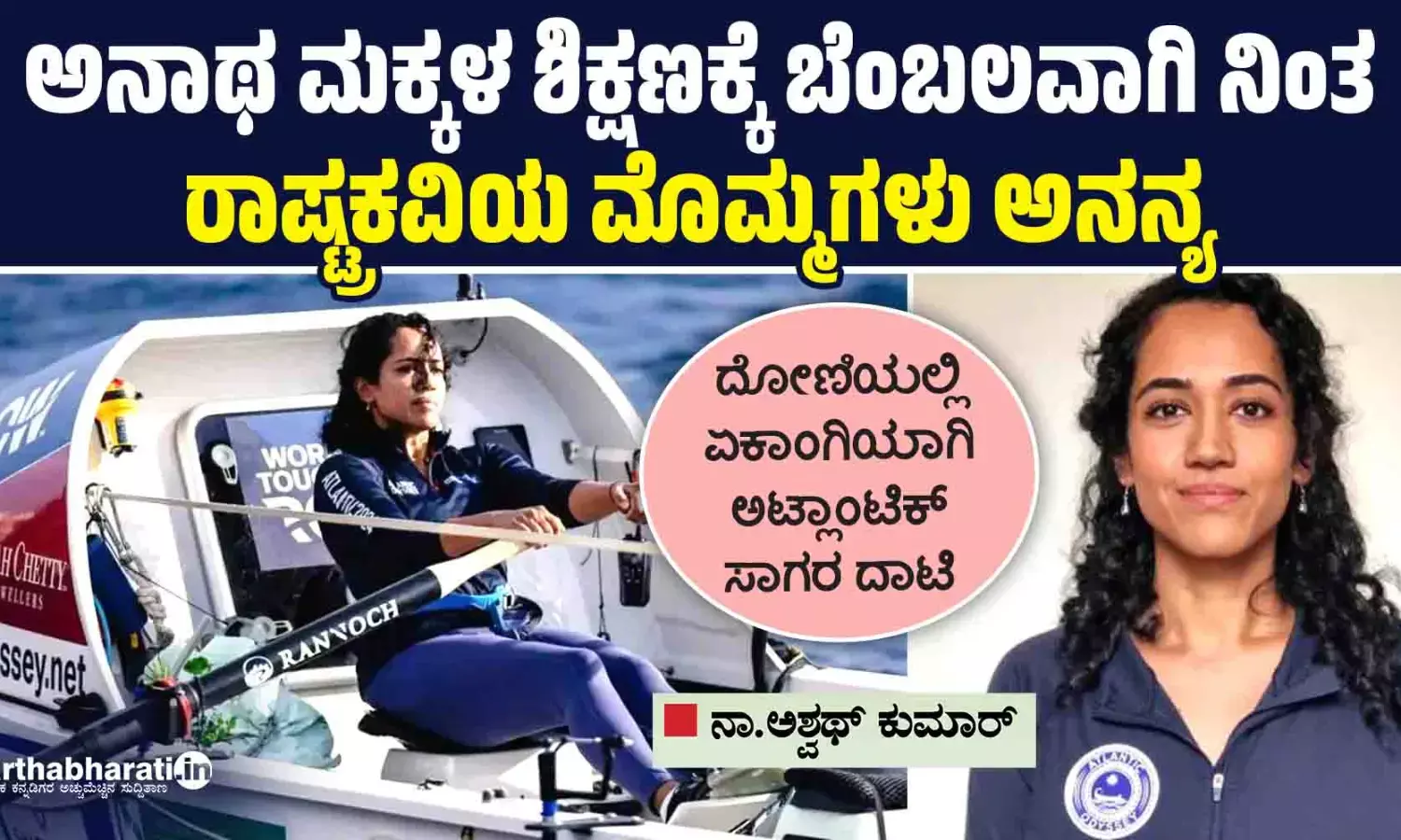 ಅನಾಥ ಮಕ್ಕಳಿಗೆ ಶಿಕ್ಷಣ ನೀಡುತ್ತಿರುವ ಗಡಿಜಿಲ್ಲೆಯ ಸಂಸ್ಥೆಗೆ ಬೆಂಬಲ ನೀಡುವ ಸಲುವಾಗಿ ರಾಷ್ಟ್ರಕವಿಯ ಮೊಮ್ಮಗಳು ಏಕಾಂಗಿಯಾಗಿ ಅಟ್ಲಾಂಟಿಕ್ ಸಾಗರವನ್ನು ದಾಟಿ ಸಾಧನೆ ಮಾಡಿದ್ದಾರೆ.