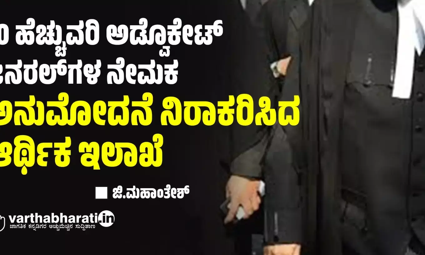 20 ಹೆಚ್ಚುವರಿ ಅಡ್ವೊಕೇಟ್ ಜನರಲ್ಗಳ ನೇಮಕ: ಅನುಮೋದನೆ ನಿರಾಕರಿಸಿದ ಆರ್ಥಿಕ ಇಲಾಖೆ