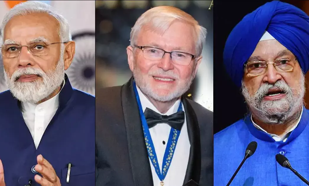 ನರೇಂದ್ರ ಮೋದಿ, ಕೆವಿನ್ ರುಡ್, ಹರ್ದೀಪ್ ಸಿಂಗ್ ಪುರಿ - Photo : PTI & X