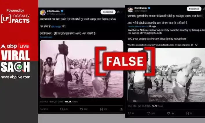 ಹೊಸದಿಲ್ಲಿ: ಹಲವಾರು ಎಕ್ಸ್ ಬಳಕೆದಾರರು ಭಾರತದ ಮಾಜಿ ಪ್ರಧಾನಿ ಜವಾಹರ ಲಾಲ್ ನೆಹರೂ ಅವರು ಪ್ರಯಾಗ್ ರಾಜ್(ಈ ಹಿಂದೆ ಅಲಹಾಬಾದ್)ನಲ್ಲಿ ನಡೆದಿದ್ದ ಹಿಂದೂಗಳ ಧಾರ್ಮಿಕ ತೀರ್ಥಯಾತ್ರೆಯಾದ 1954ರ ಕುಂಭಮೇಳದ ಸಂದರ್ಭದಲ್ಲಿ ಗಂಗಾ ನದಿಯಲ್ಲಿ ಮಿಂದೆದ್ದರು ಎಂದು ಅವರ ಭಾವಚಿತ್ರವೊಂದನ್ನು ಹಂಚಿಕೊಂಡಿದ್ದರು. ಈ ಭಾವಚಿತ್ರ ಸಾಮಾಜಿಕ ಮಾಧ್ಯಮಗಳಲ್ಲಿ ವೈರಲ್ ಆಗಿತ್ತು.