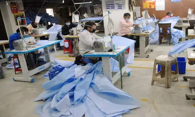 ಪಿಪಿಇ ಕಿಟ್ ಹೊಲಿಯುತ್ತಿರುವುದು (ಸಾಂದರ್ಭಿಕ ಚಿತ್ರ PC: PTI)