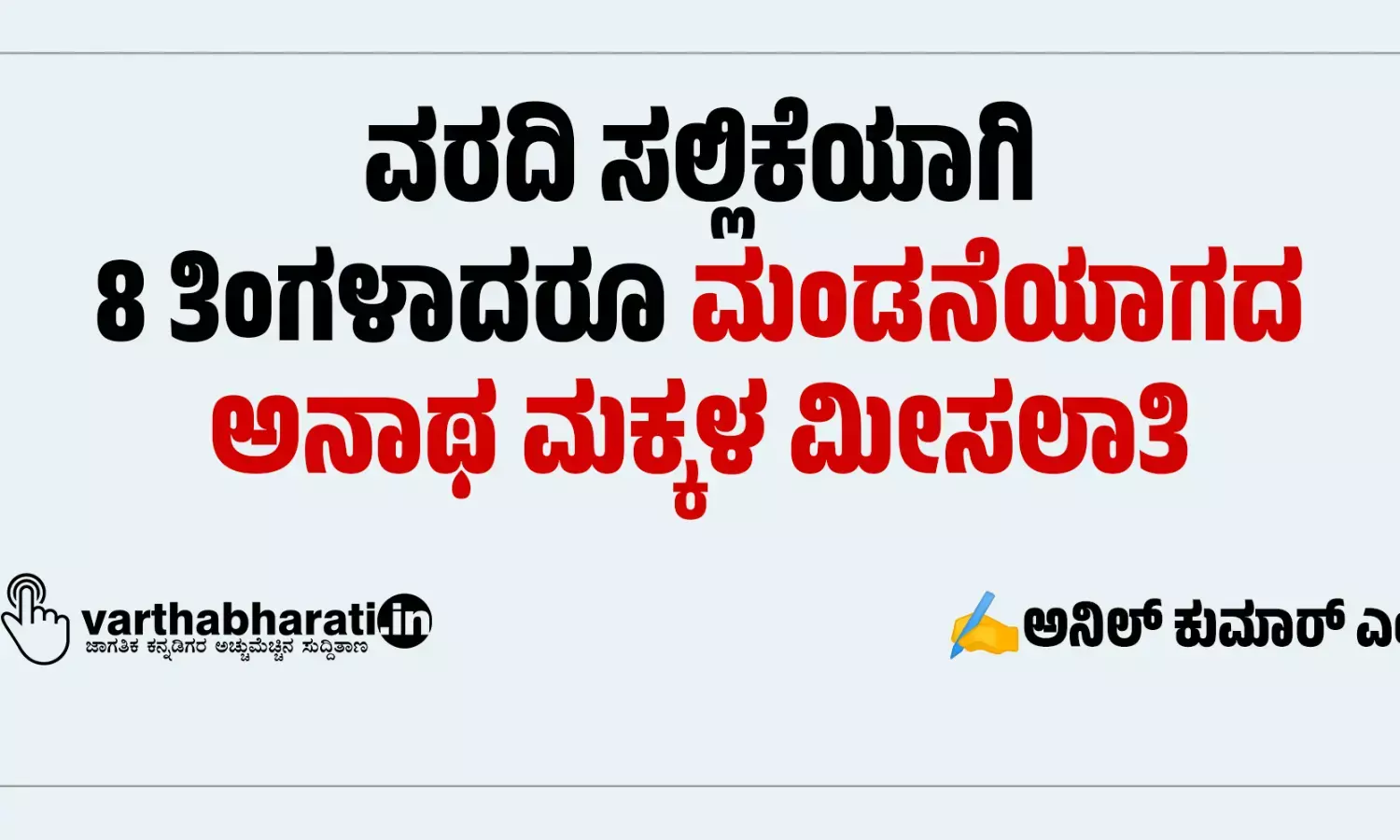 ವರದಿ ಸಲ್ಲಿಕೆಯಾಗಿ 8 ತಿಂಗಳಾದರೂ ಮಂಡನೆಯಾಗದ ಅನಾಥ ಮಕ್ಕಳ ಮೀಸಲಾತಿ